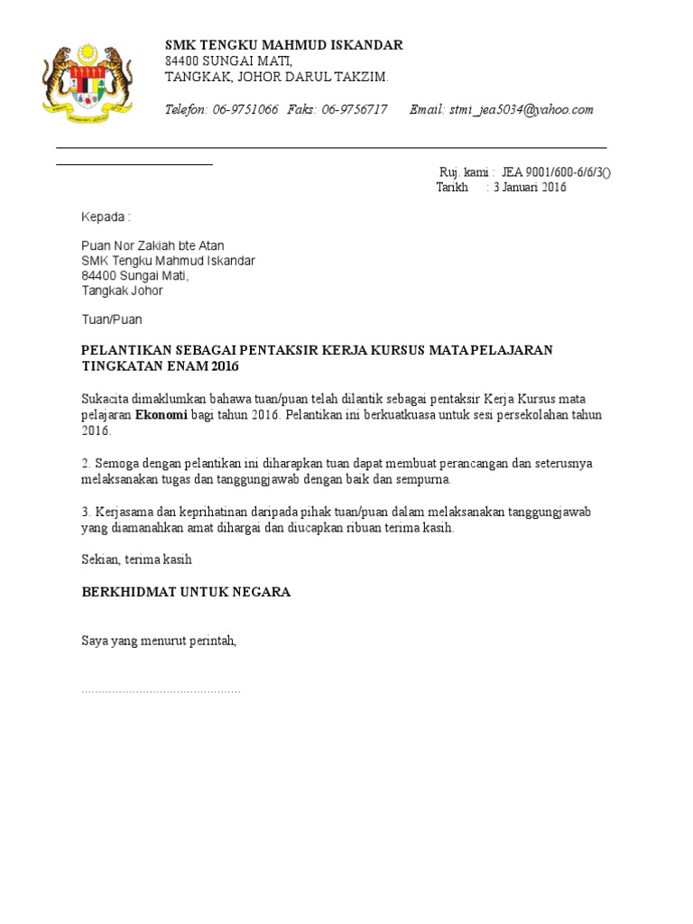Contoh Surat Pelantikan Kerja Kerajaan Letter 7saudara Com